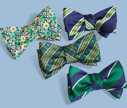 Beautiful green Celtic knots, bordered in gold, repeat between white shamrocks on silk twill. A great choice for St. Patrick's Day and beyond.The Galway Necktie is Self-tipped.