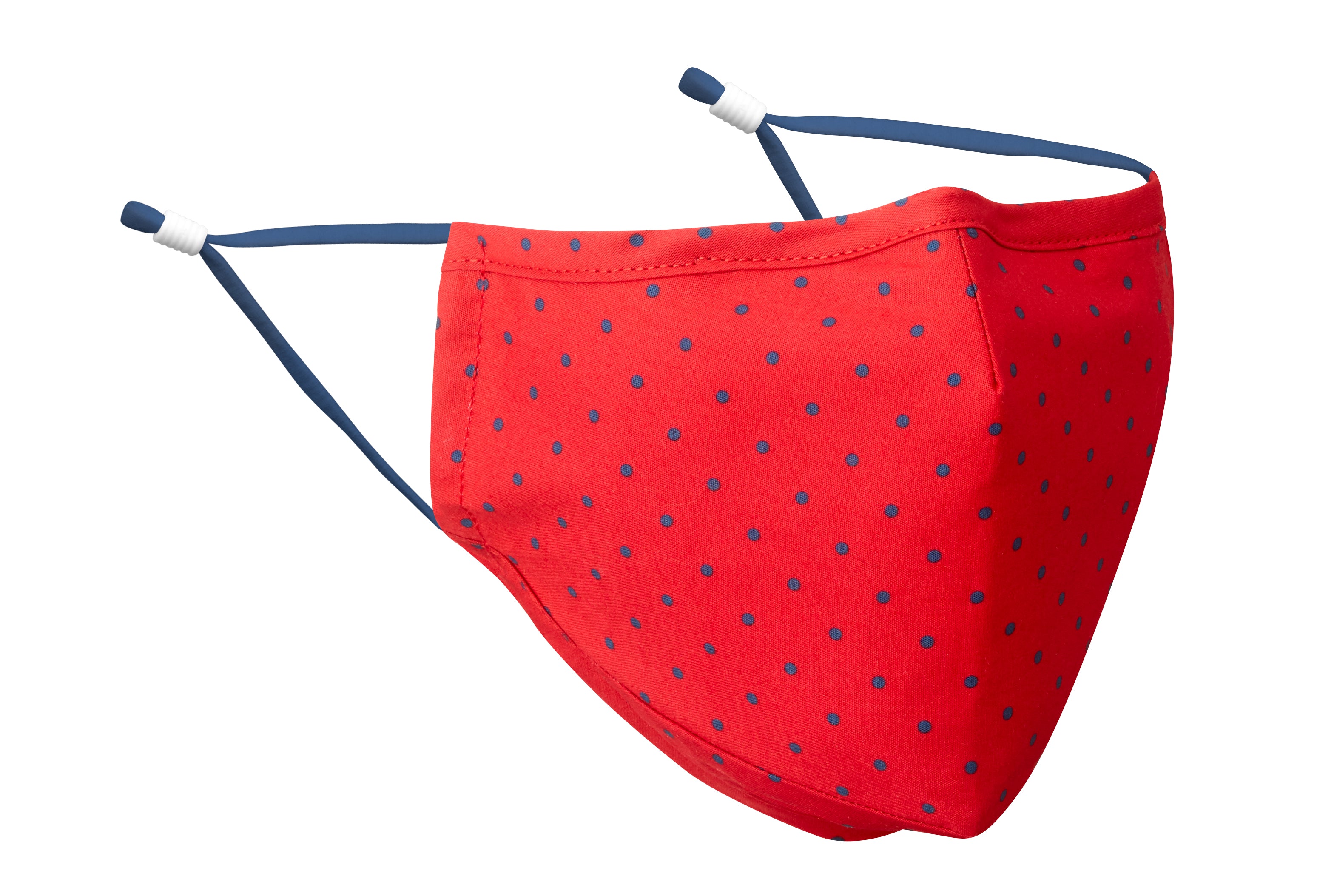 Bright red cotton with navy blue dots - a cheerful choice all day, every day.