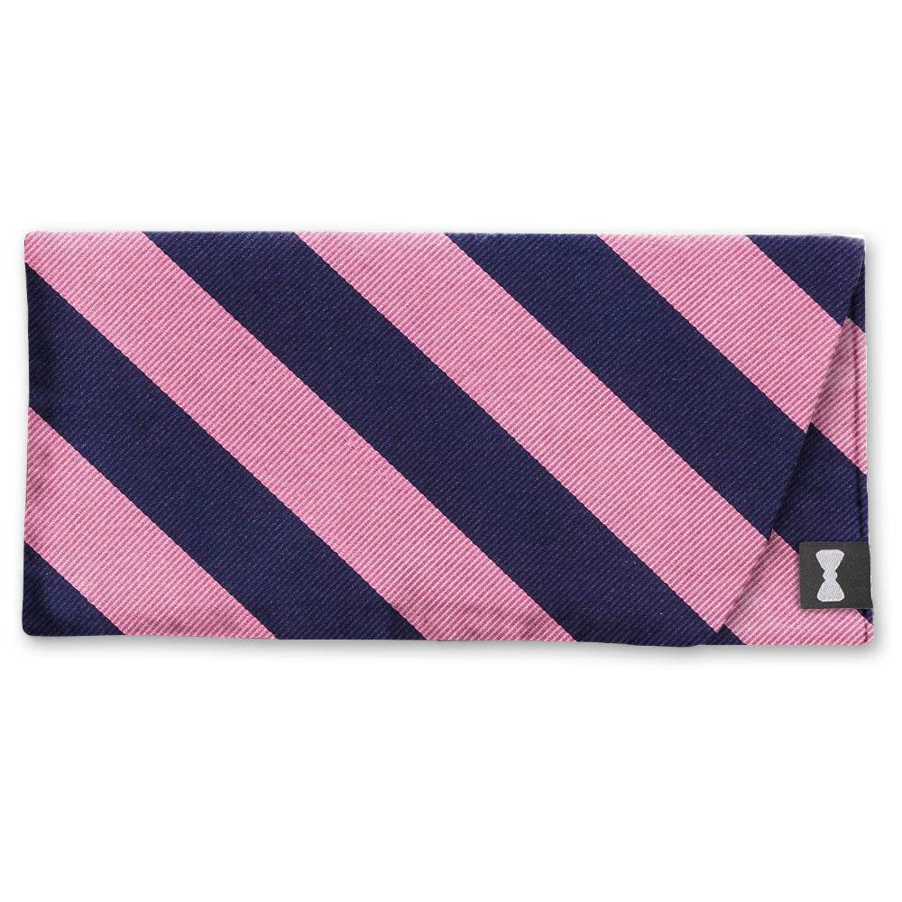 No matter what your alma maters colors may be, adding this ribbed woven silk tie featuring navy blue and dark pink stripes to your tie collection is a smart choice.
