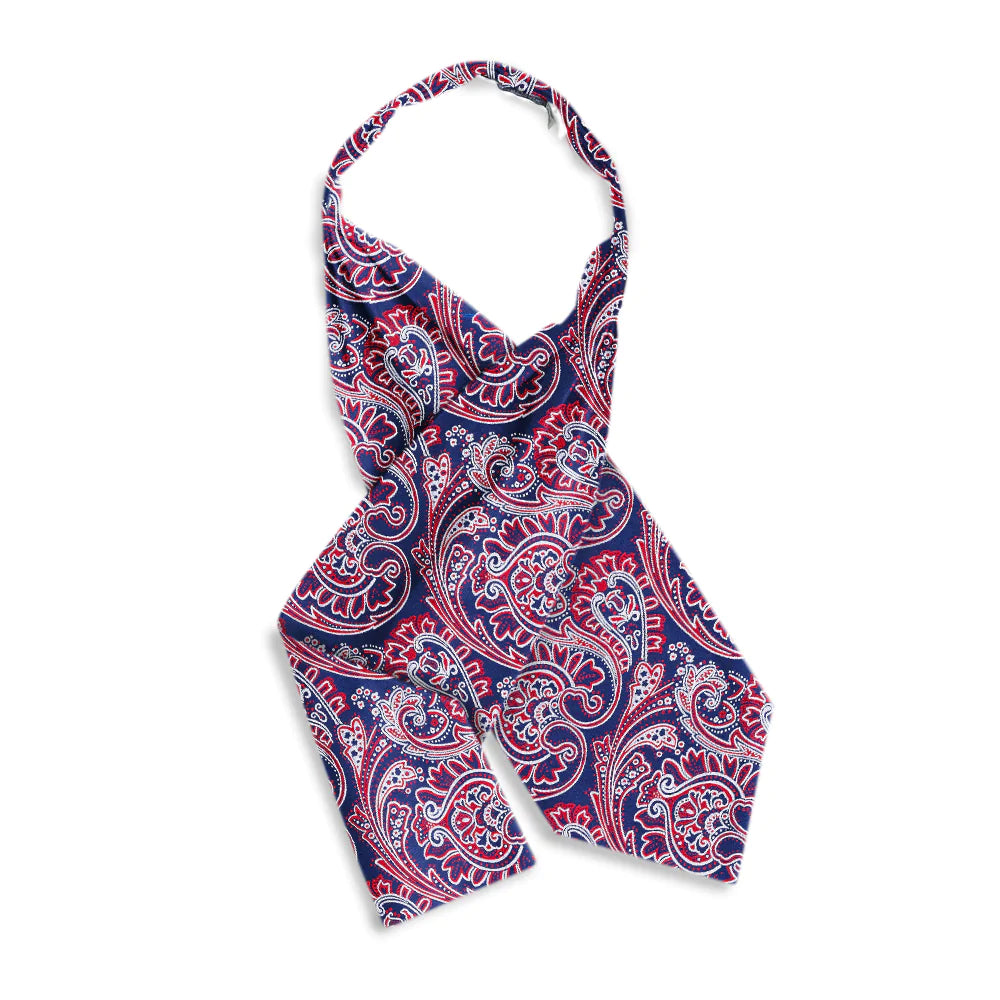 The Alexandria patterned free-fold cravat features three stitched center pleats that allow luxurious drape in front without fabric bulk at the nape of your neck. It is completely reversible and sized for a perfect fit. May require a stick-pin.