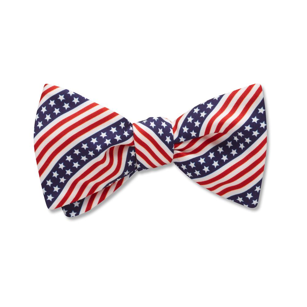 Our kids' bow ties are created specifically to fit the younger fellows in your household, and are available in four sizes to fit infants all the way through adolescence. Each size is available in freestyle, pre-tied and clip-on styles. Match Dad and his kids in the same ties, or let everyone choose their own. This one, The All American.
