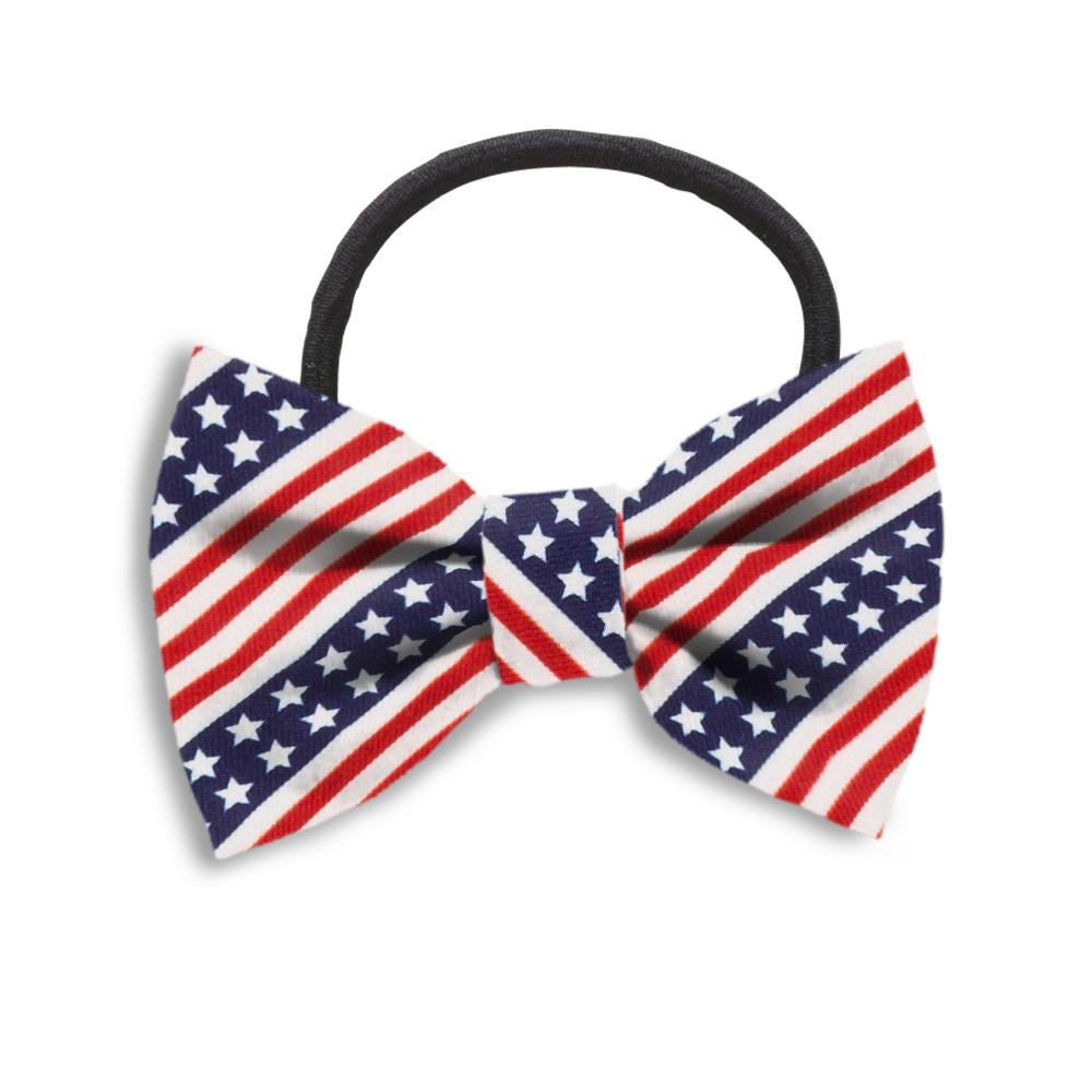 No need to leave women out of your Beau Tie family. Our hair bows are beautiful and practical - with the All American bow measuring about 3 inches wide and attached to pony tail holder with a circumference of 4-3/4 inches.