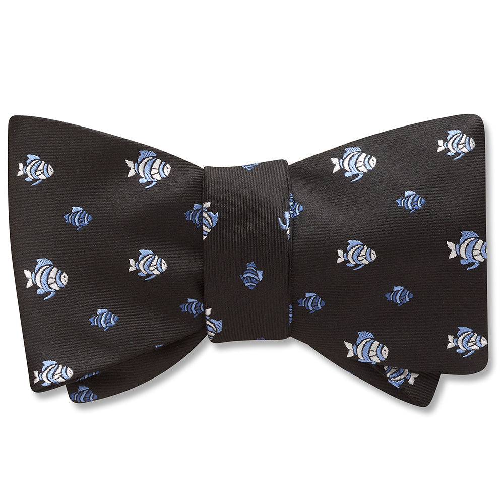 This woven black silk featuring a school of blue and white angel fish is sure to please your favorite ichthyophile.