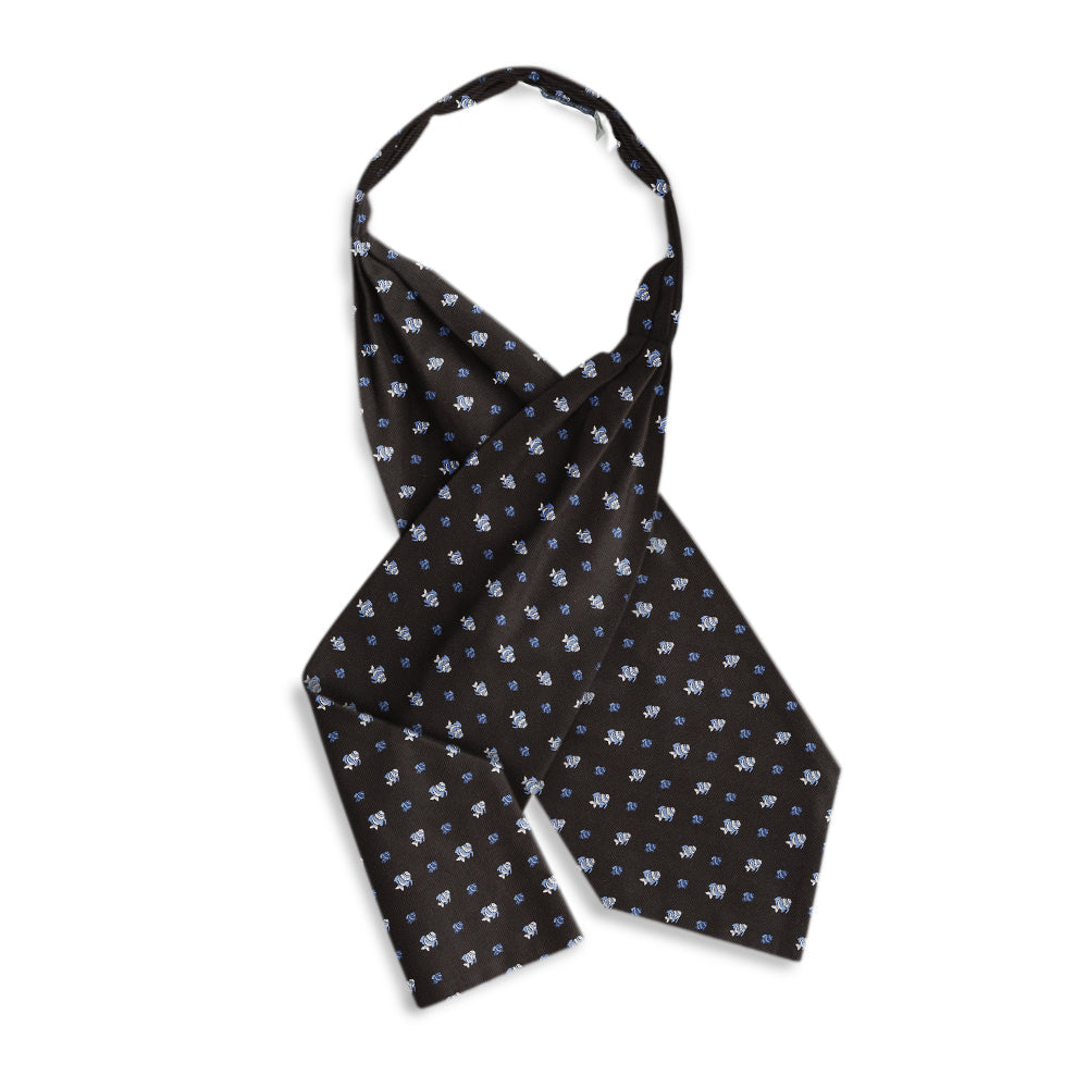 This woven black silk featuring a school of blue and white angel fish is sure to please your favorite ichthyophile.