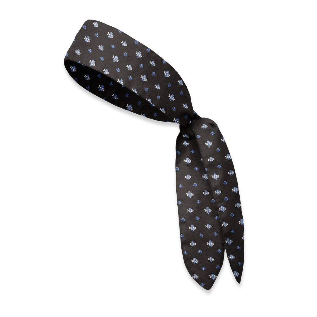 This woven black silk featuring a school of blue and white angel fish is sure to please your favorite ichthyophile.