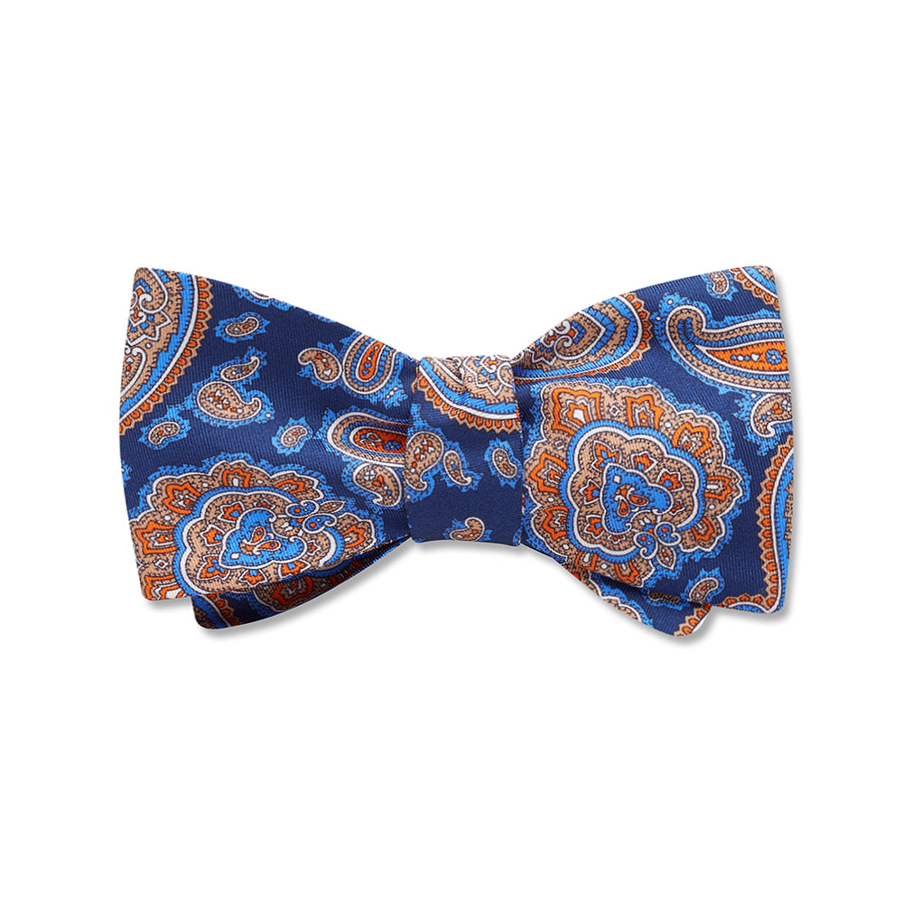 Lake blue Italian silk twill dances with paisleys and more - all in shades of blue and orange.