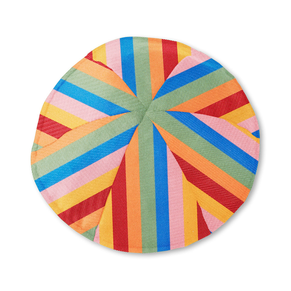 Beautiful woven silk stripes of pink, gold, red, orange, green and blue with alternating ribbed and smooth weaves. A unique choice.