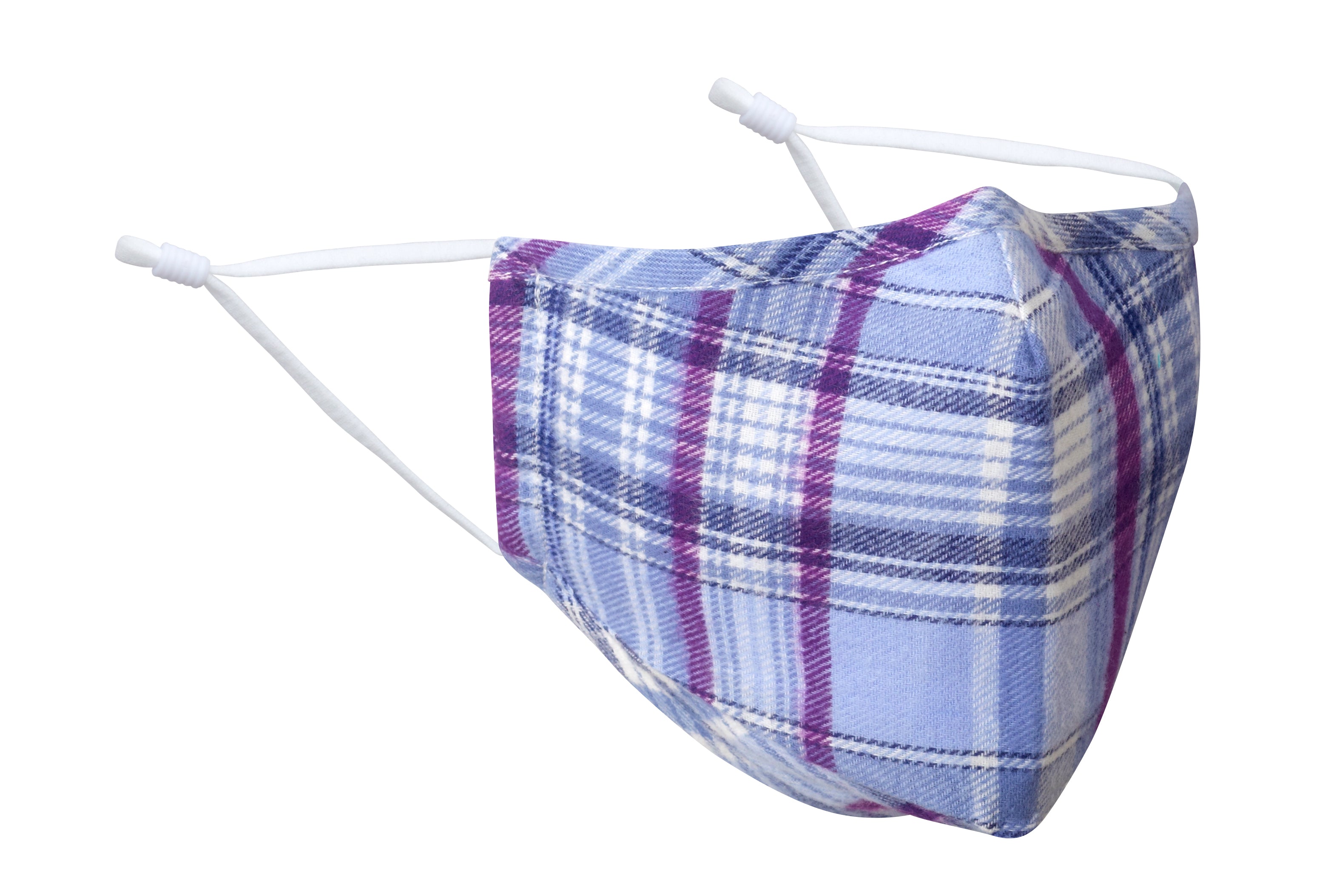 A wonderful blue plaid with hits of navy and purple makes this flannel face mask a great go-to choice.