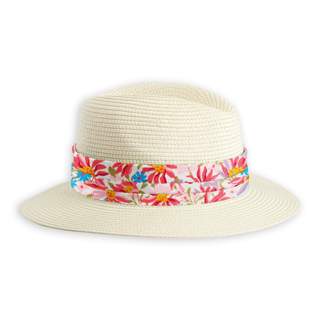 Our handmade hat bands are 29 inches long, 1.75 inches wide, feature stylish pleats, and are finished with small fabric picks, so they're adjustable in size and easy to move from one hat to another. A snazzy addition to your head gear.