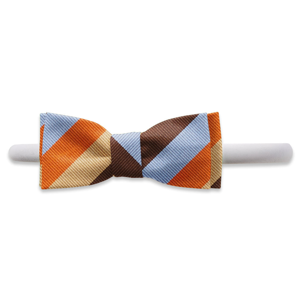 Beautifully ribbed woven silk in warm shades of tan, orange, blue and brown make this stripe a great choice - especially in autumn.