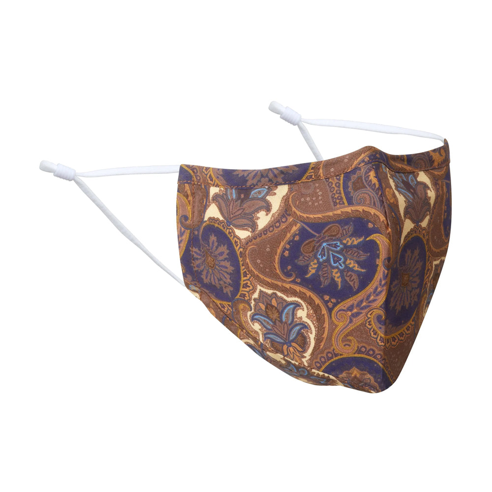 Combine the essence of a paisley with floral iconography - in shades of ivory, blue and brown cotton - and you'll have this uniquely charming face mask.