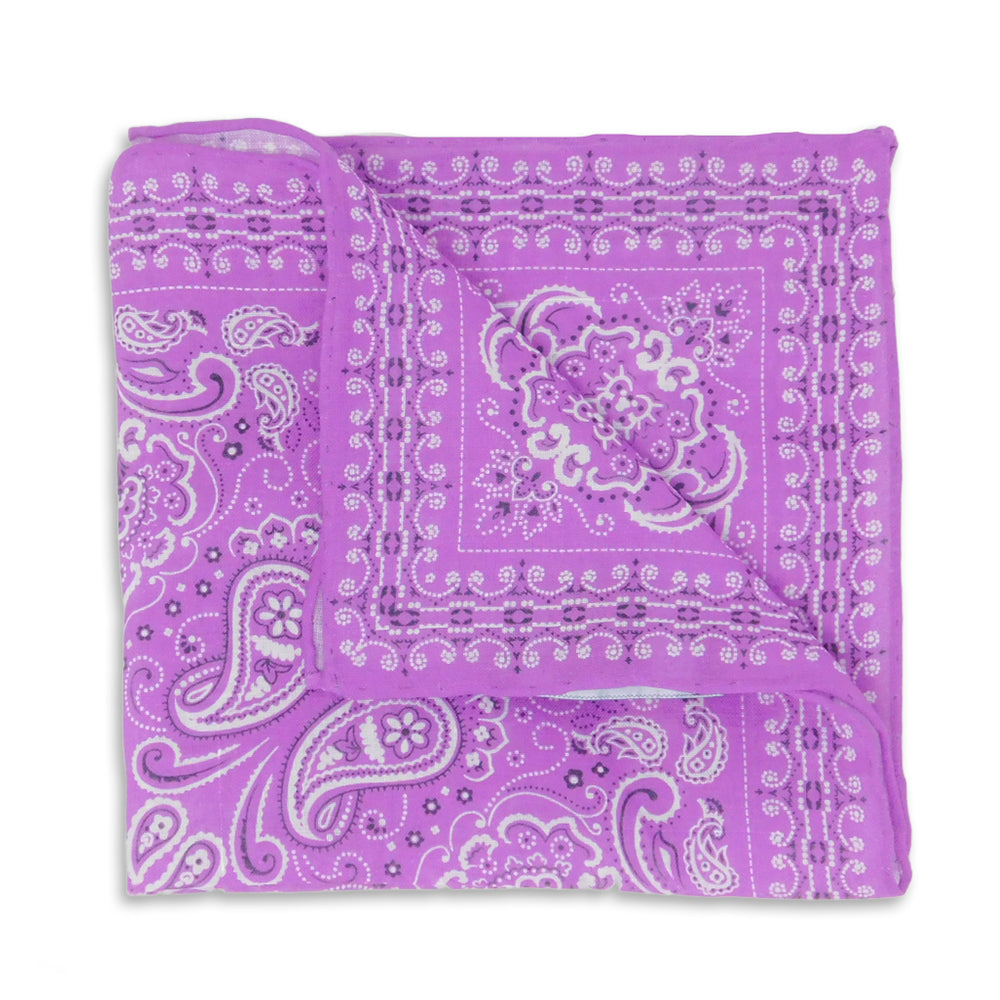 Add a bit of somewhat sassy flair when you tuck in this perfectly purple linen pocket square in a classic bandana design measuring a generous 12" x 12" and finished with a hand-rolled hem.