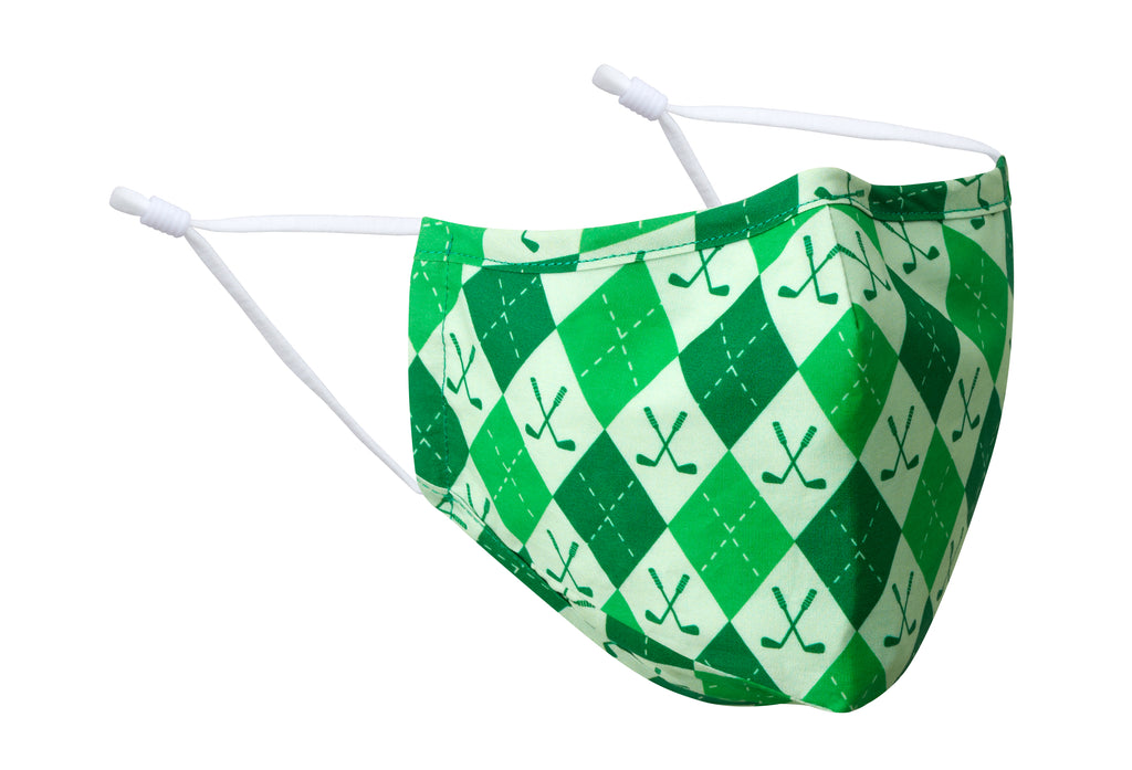 Share your passion for the game - on and off the course - with this creative nod to golf. Crossed clubs are featured in the midst of an argyle pattern - all in shades of green on cotton.