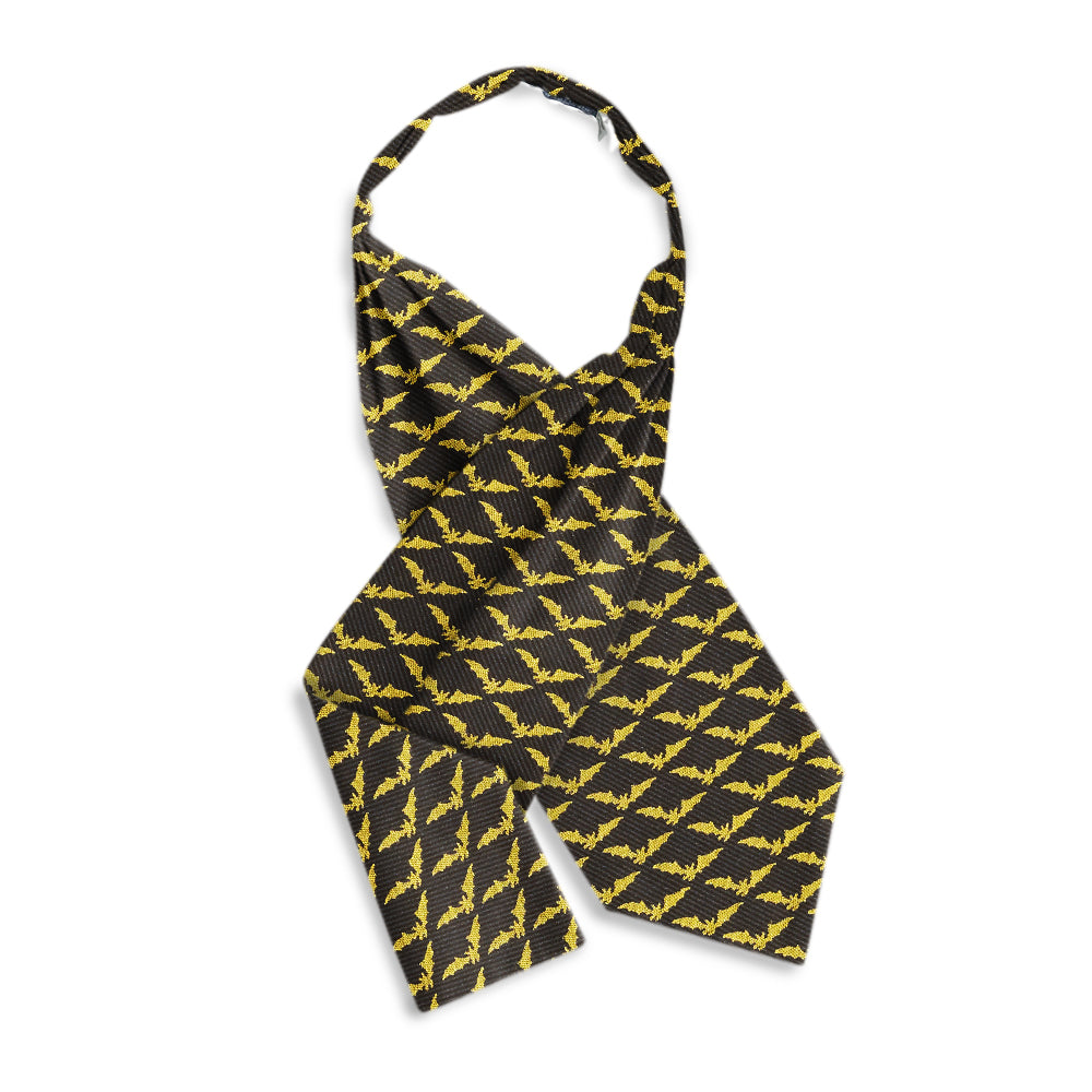 The Bat Cave patterned free-fold cravat features three stitched center pleats that allow luxurious drape in front without fabric bulk at the nape of your neck. It is completely reversible and sized for a perfect fit. May require a stick-pin.