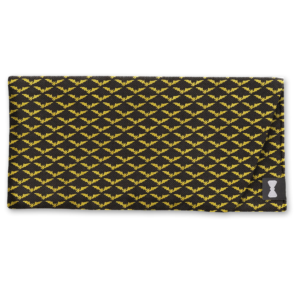 Whether you love halloween or just love bats, this black woven silk with its cloud of gold bats is sure to be just the right addition to your wardrobe.
