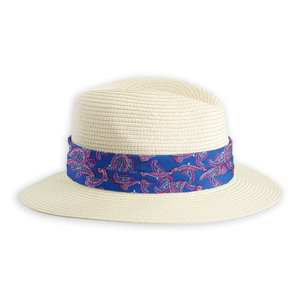 Our handmade hat bands are 29 inches long, 1.75 inches wide, feature stylish pleats, and are finished with small fabric picks, so they're adjustable in size and easy to move from one hat to another. A snazzy addition to your head gear.