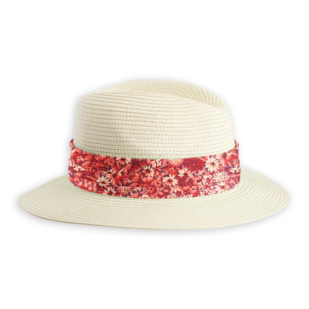 Our handmade hat bands are 29 inches long, 1.75 inches wide, and are finished with small fabric picks, so they're adjustable in size and easy to move from one hat to another. A snazzy addition to your head gear.