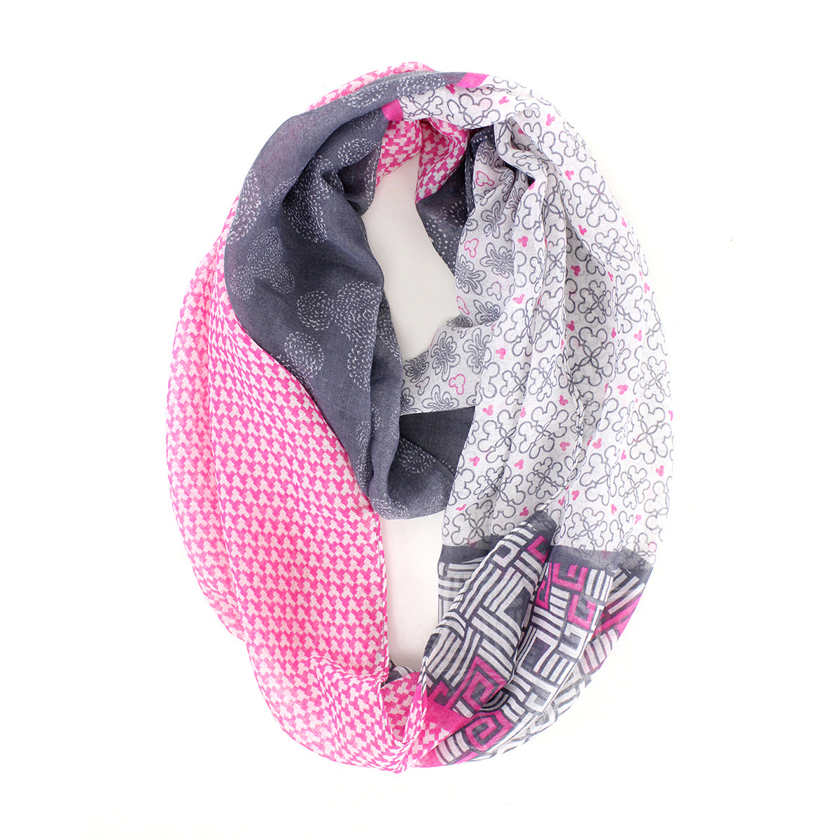 How can you resist this oh-so-appealing infinity scarf with its patchwork of pink, black and white patterns? We couldn't!