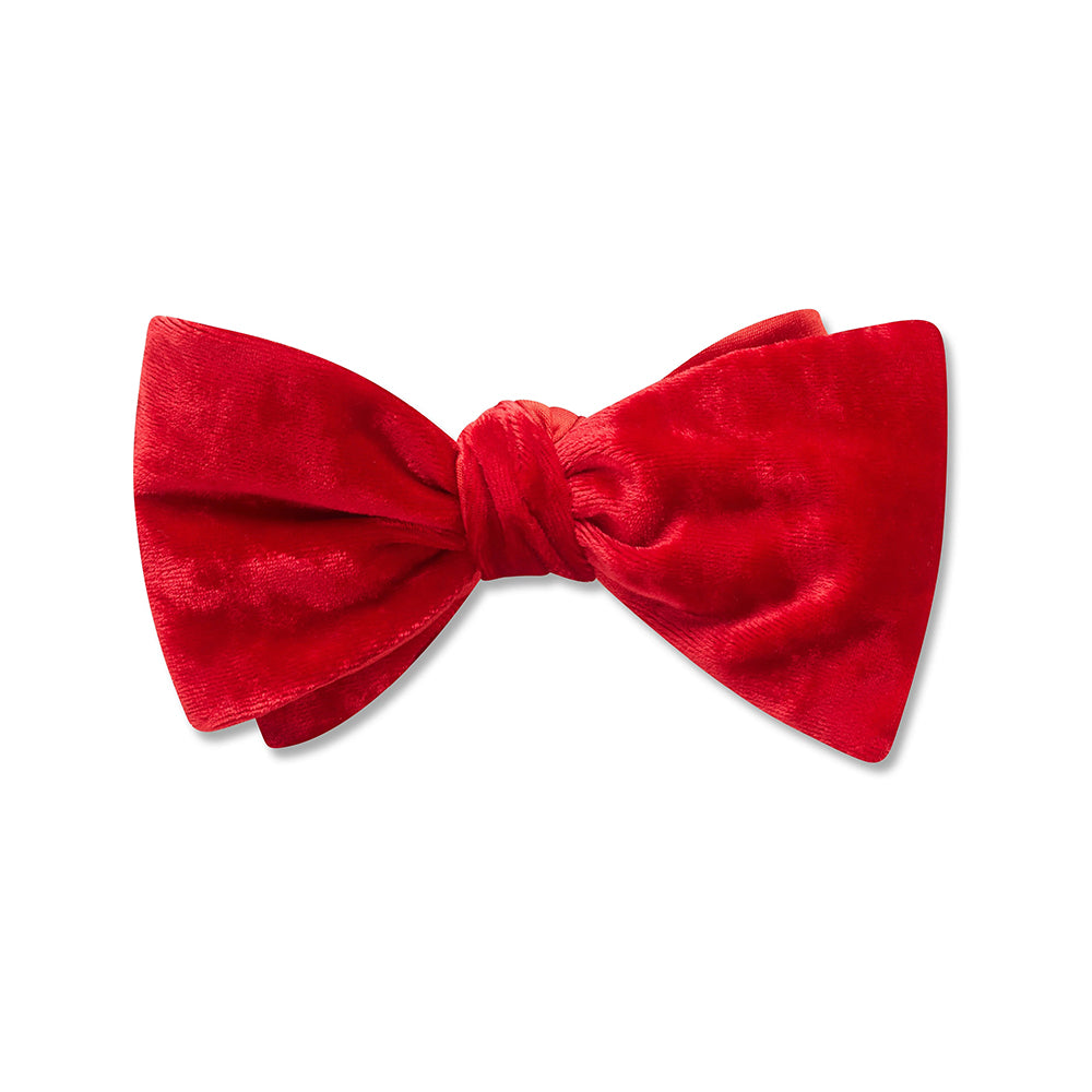 An awesome red velvet bow tie with a corresponding red silk on the back. It will tie well and, since its reversible, will see you through all kinds of special events.