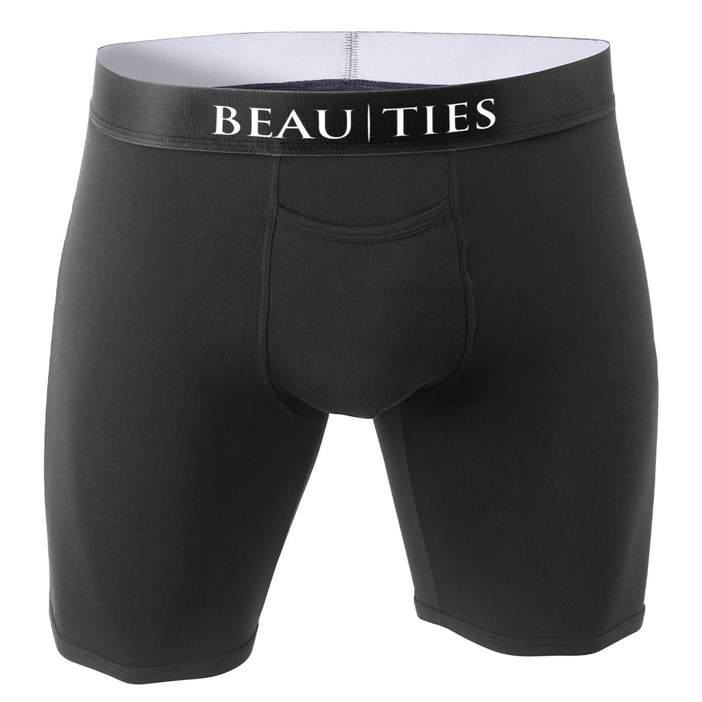These essential basic black boxer briefs are made of an uber-comfortable blend of 95% bamboo fiber and 5% spandex designed to keep you cool and dry - and feeling as good as you look.  And because bamboo does not require pesticides or herbicides to grow - and grows extremely quickly - it's a more eco-friendly choice, as well.