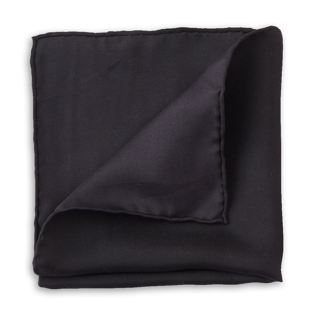 This solid black silk pocket square with hand-rolled edges is sure add a classic bit of flair to your outfit.
