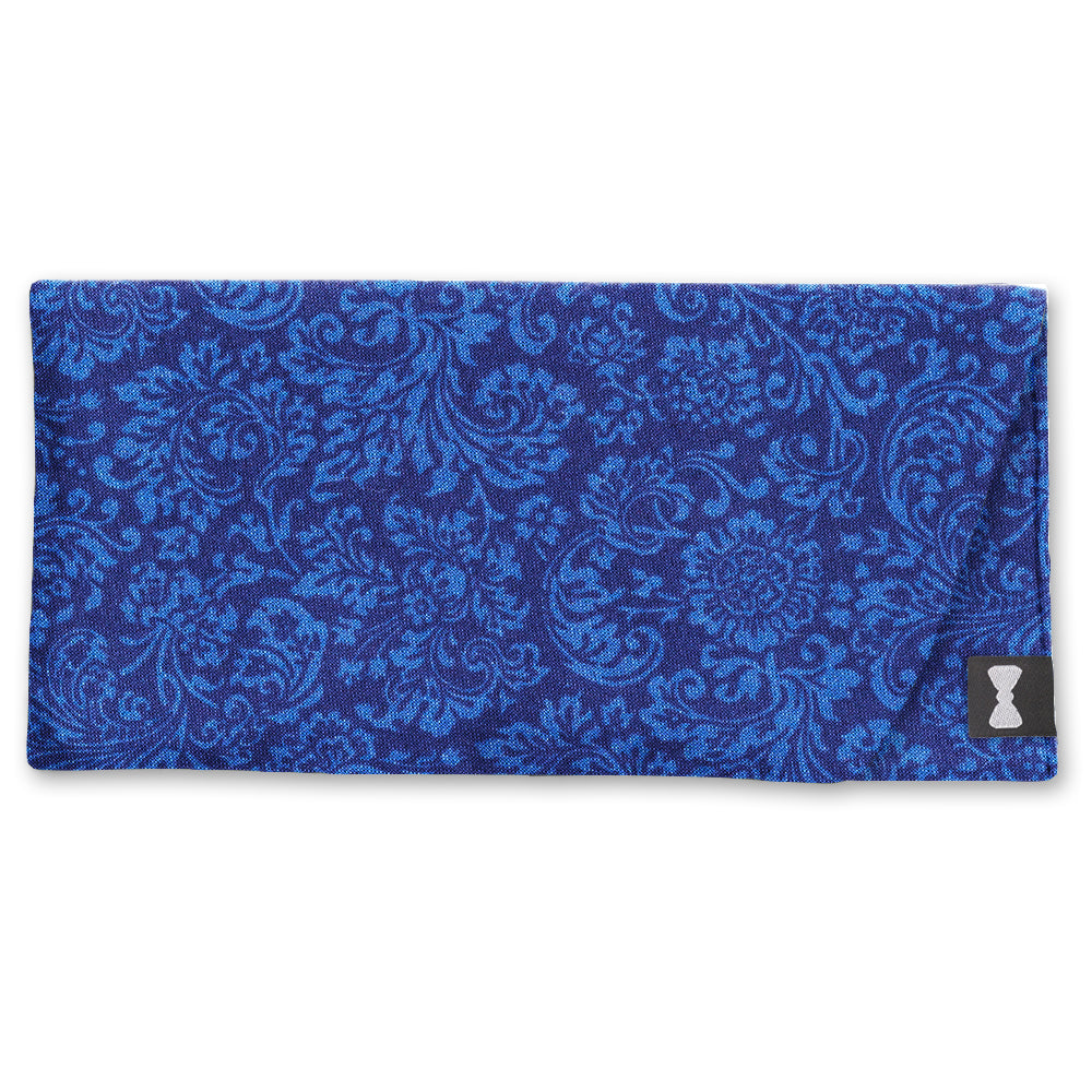 This lovely design, featuring light blue whirls and swirls of fantasy foliage on a background of navy blue cotton, is subtle and satisfying.