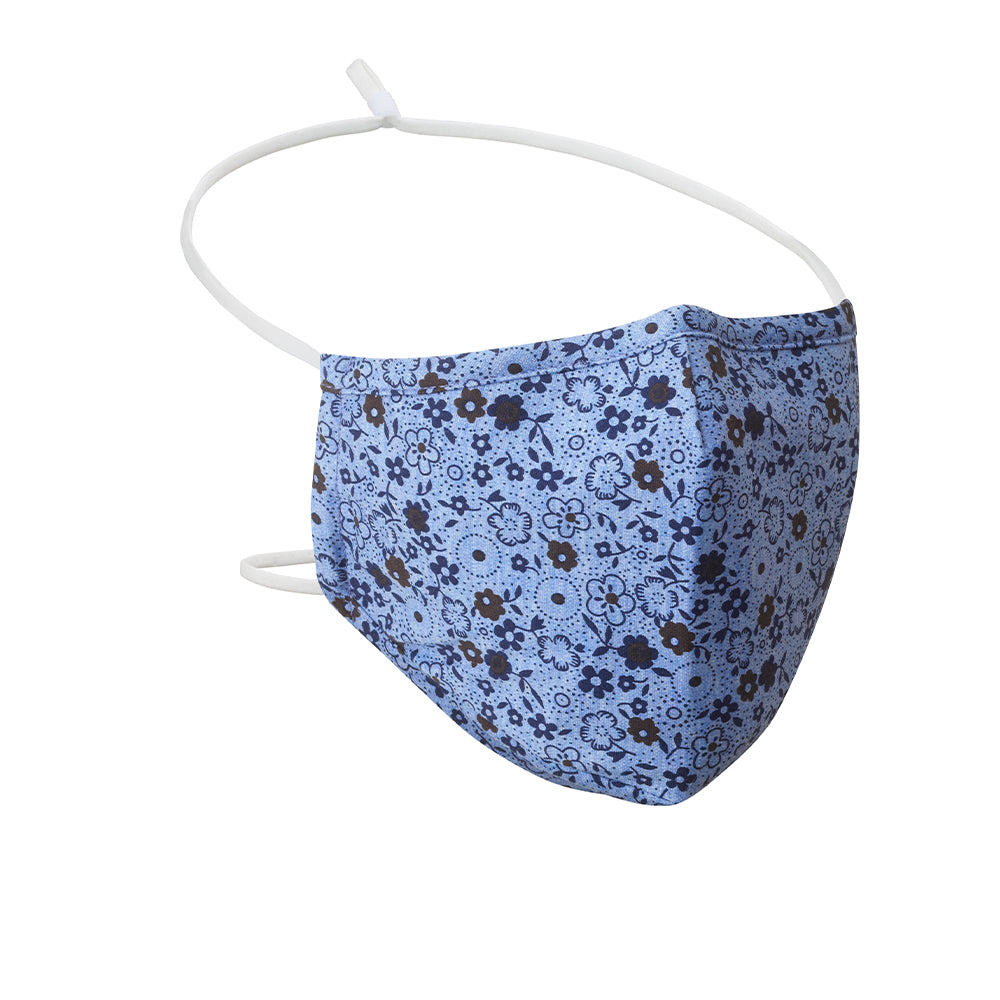 Lots of little blue flowers on light blue cotton make this mask as charming as it is useful.