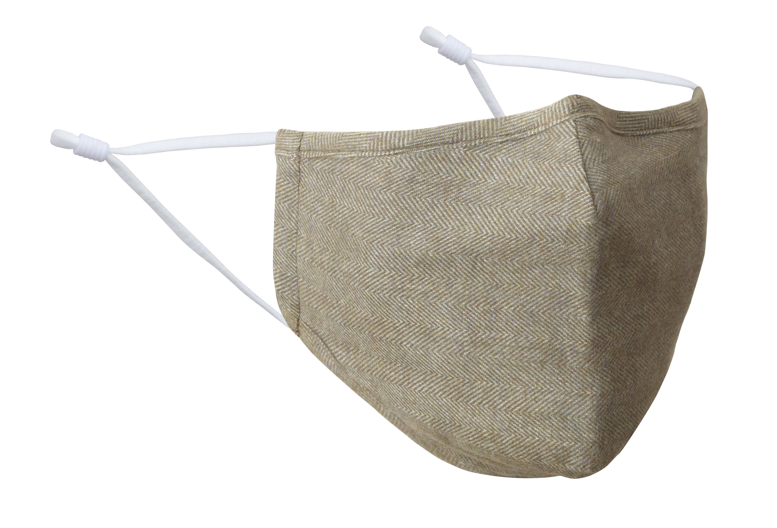 A beautifully woven herringbone pattern gives immense depth and life to this handsome sage green brushed cotton mask.
