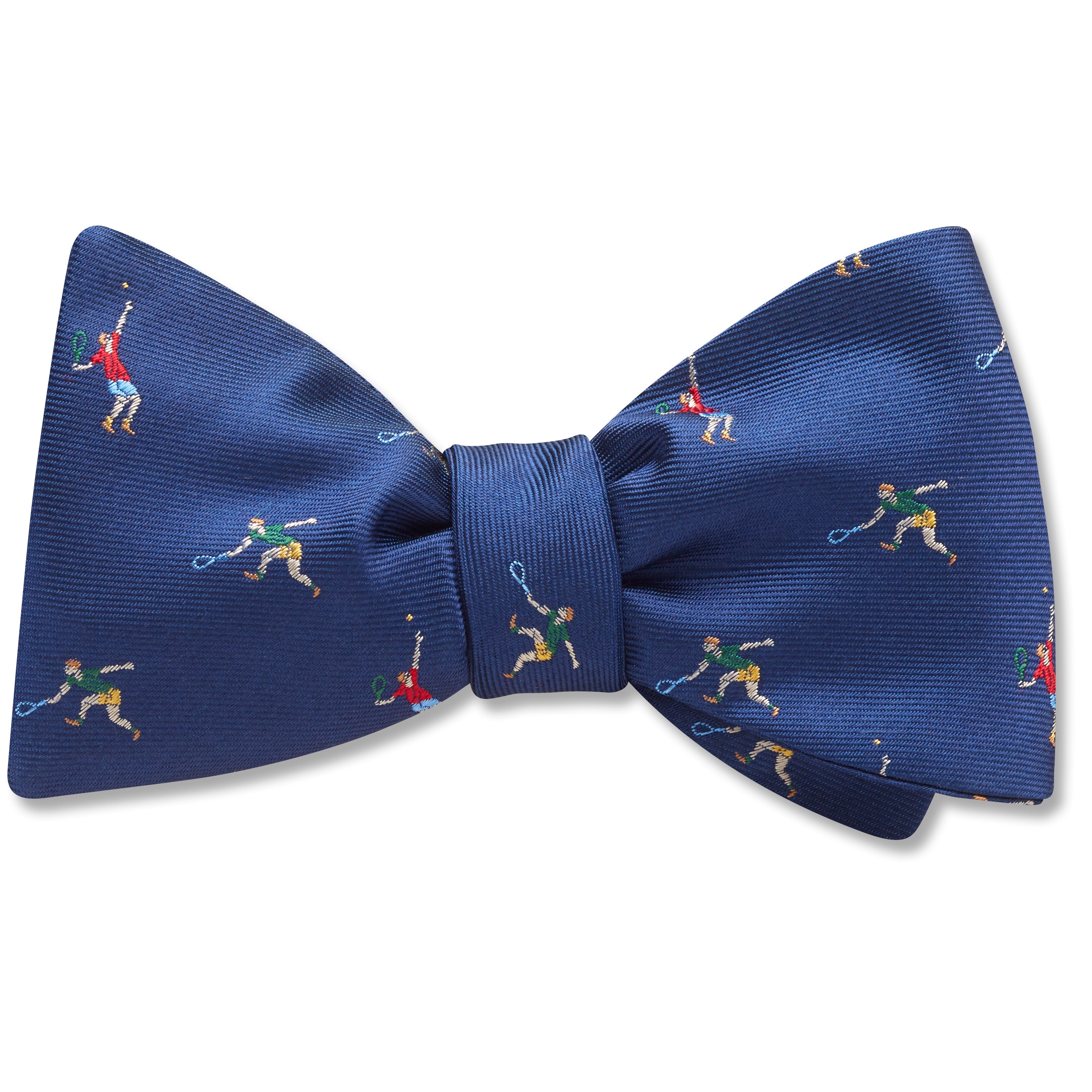 For every tennis player - and those who are their fans - this navy blue woven silk with its repeating pattern of what we think are some pretty good-looking serves and volleys is a great choice.
