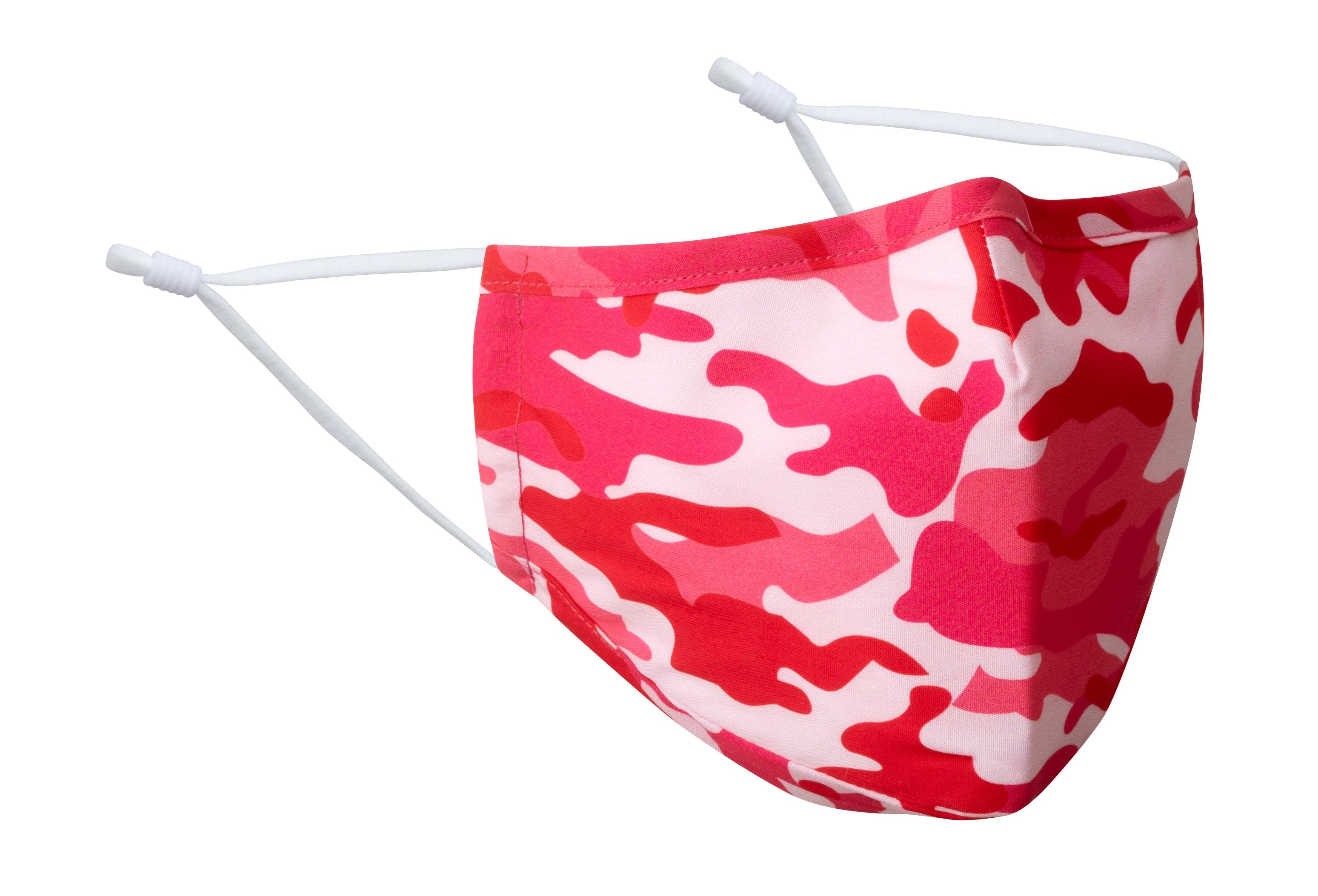 All camouflage need not be green and brown. Have some fun with your face mask wearing this very cool combo of pinks and reds on white cotton.