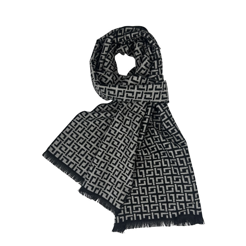 Featuring an almost mystical geometric pattern in black and white, this scarf is sure to add some flair to your outfit.