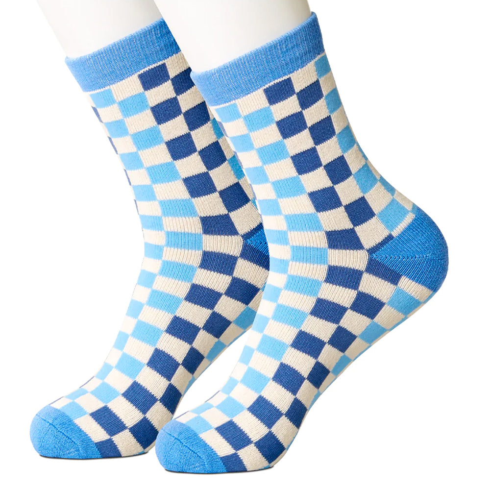 Have some fun with these alternating squares of blue, navy and bone white with sky blue heels and toes.