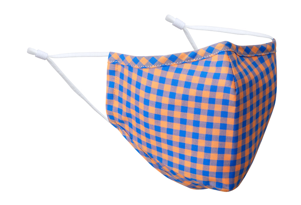 A classic checked pattern of gold and blue cotton - a practically perfect face mask.
