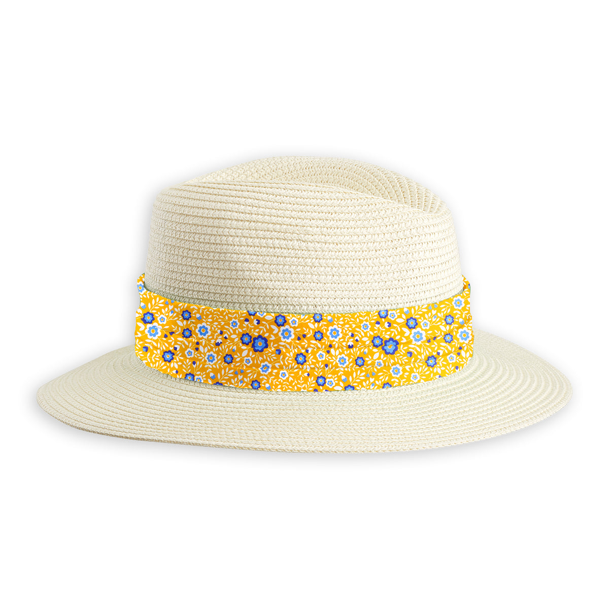 Our handmade hat bands are 29 inches long, 1.75 inches wide, feature stylish pleats, and are finished with small fabric picks, so they're adjustable in size and easy to move from one hat to another. A snazzy addition to your head gear.