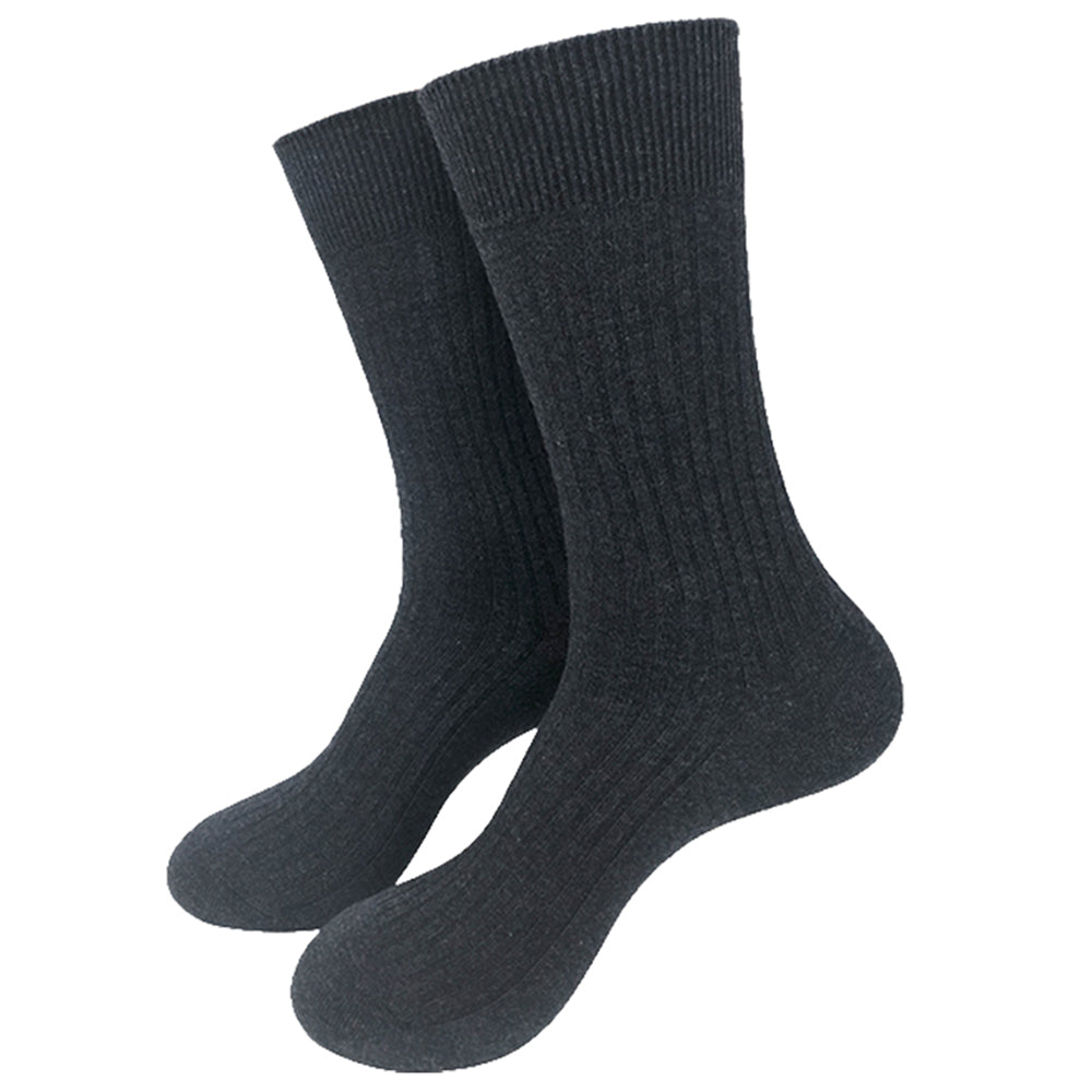 Some outfits call for the perfect pair of solid-colored dress socks, and this classic style, knit in a ribbed pattern of charcoal grey, is sure to fit the bill!