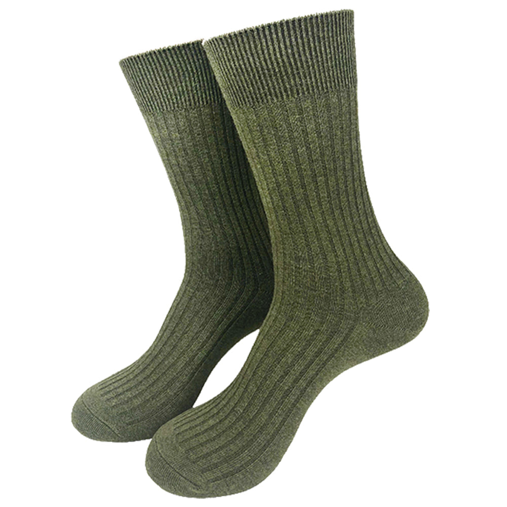 Some outfits call for the perfect pair of solid-colored dress socks, and this classic style, knit in a ribbed pattern of olive green, is sure to fit the bill!