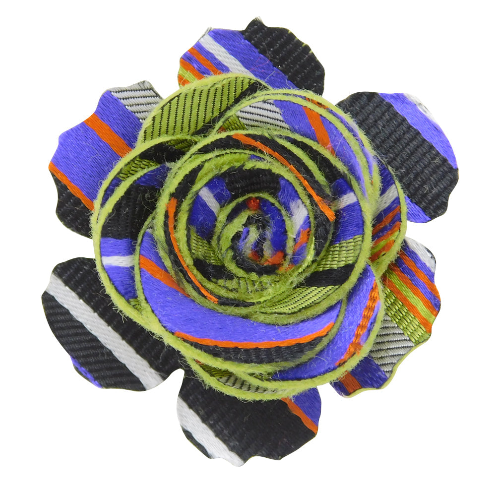 This cheerful boutonniere will not wilt or fade after you've tucked it into your lapel. Featuring a variety of multi-colored stripes in woven silk and backed with hand cut grassy green wool felt, it's finished with a pin to anchor it to your jacket.