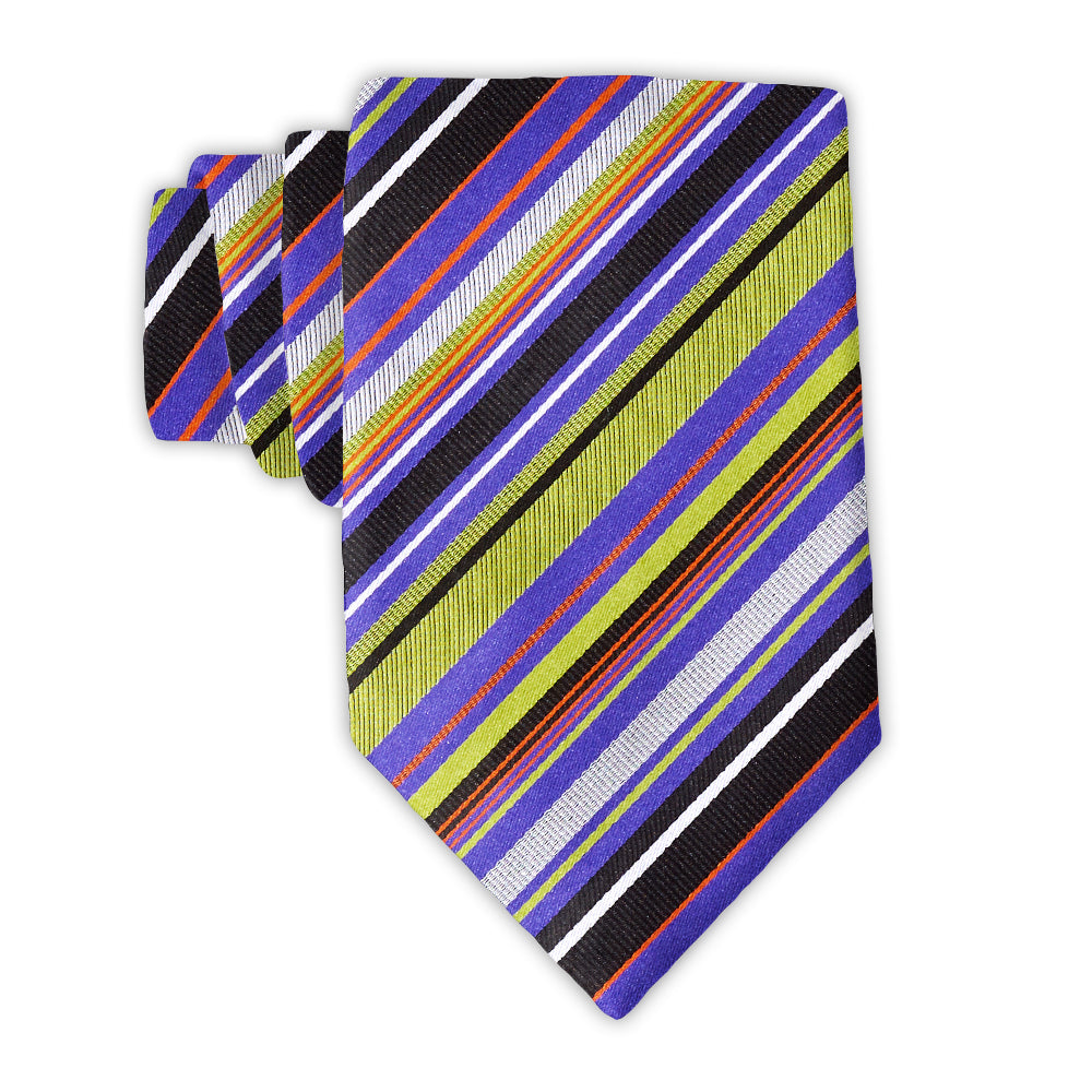 This enticing multi-colored stripe, featuring earthy tones and a variety of textured weaves in woven silk, is sure to enhance your fall wardrobe - and plenty of other seasons, too!