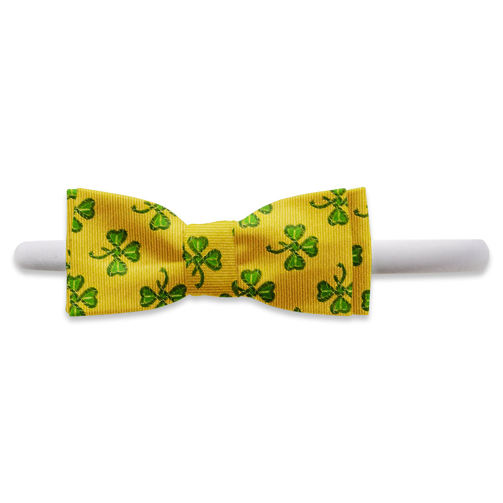 Sunshine yellow woven silk dances with a repeating pattern of green trefoils - maybe not as lucky as the four-leaf variety, but a great choice for St. Patrick's day and beyond.