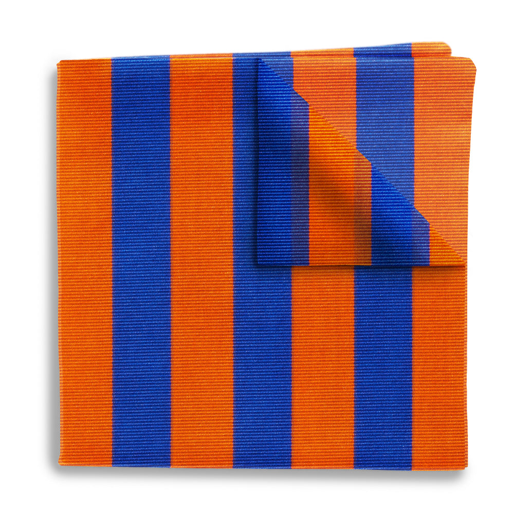 Whether you want to wear your school's colors or simply love the combination of bright blue and orange, we think you'll be happy with these broad stripes in woven silk.
