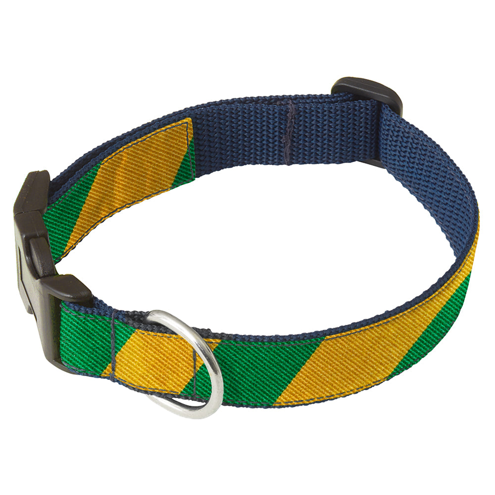 Whether you want to wear your school's colors or simply love the combination of green and gold, we think you'll be happy with these broad stripes in woven silk.