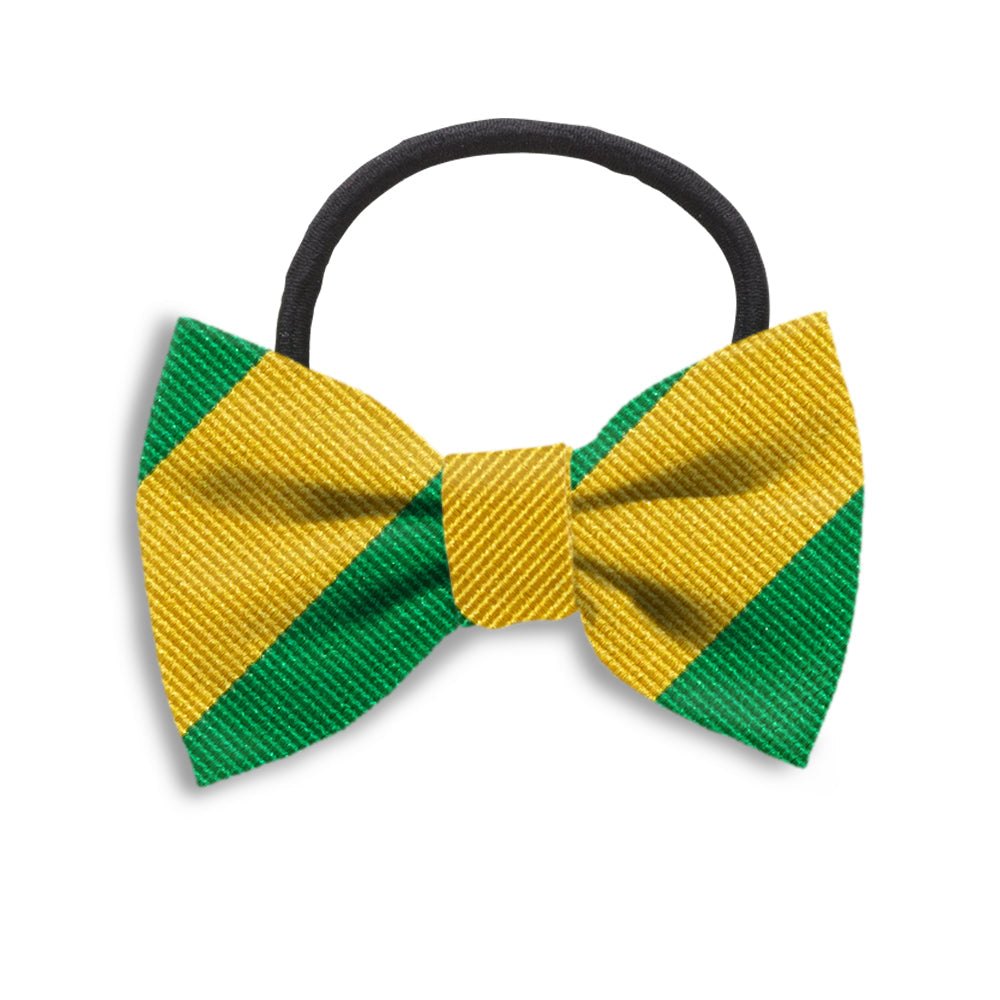 No need to leave women out of your Beau Tie family. Our hair bows are beautiful and practical - with the Collegiate Green and Gold bow measuring about 3 inches wide and attached to pony tail holder with a circumference of 4-3/4 inches.