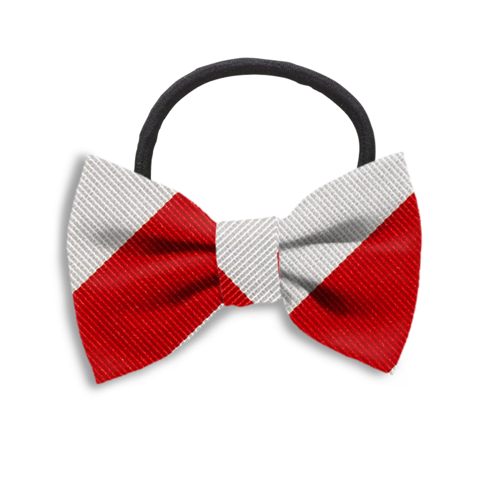 No need to leave women out of your Beau Tie family. Our hair bows are beautiful and practical - with the Collegiate Red and Silver bow measuring about 3 inches wide and attached to pony tail holder with a circumference of 4-3/4 inches.