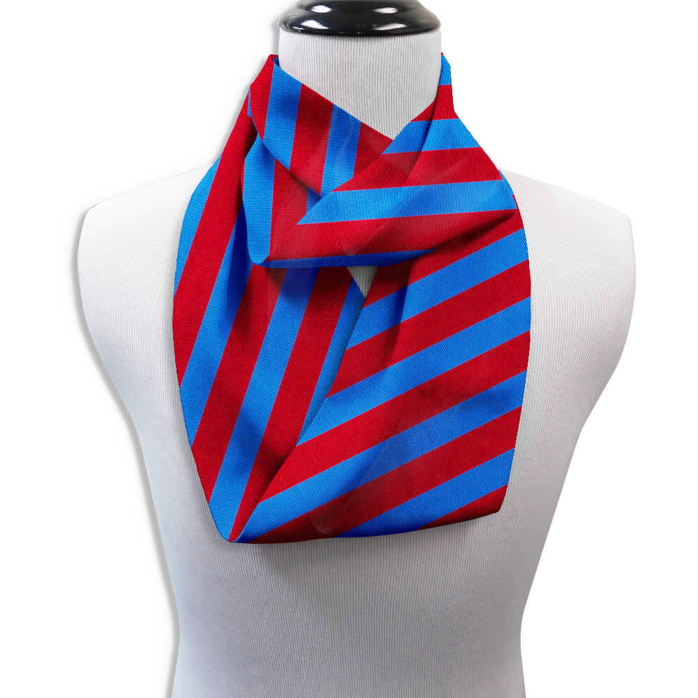 Each scarf is double-sided with a 58 inch circumference and is 6 inches wide. If you've always wanted a silk scarf, the Collegiate Royal and Red is a great choice!