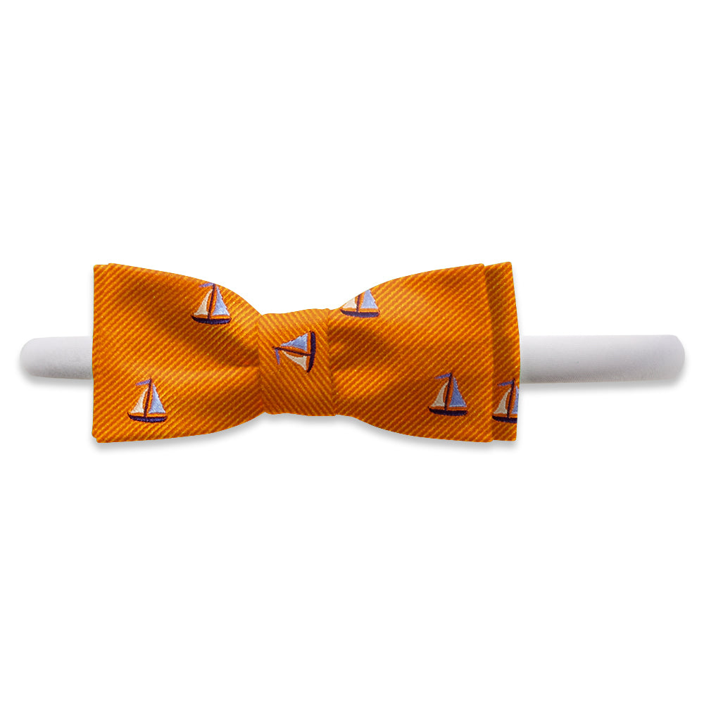 Navy-hulled sloops with blue and white sails scud along in a sea of lightly ribbed copper-orange woven silk. You don't have to be a mariner to love this fabric!