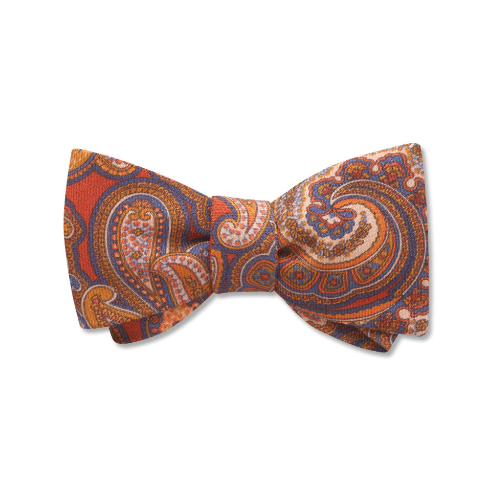 Paisleys in autumnal shades of copper, blue and tan swirl together on this silky smooth Italian silk. A show-stopping choice!