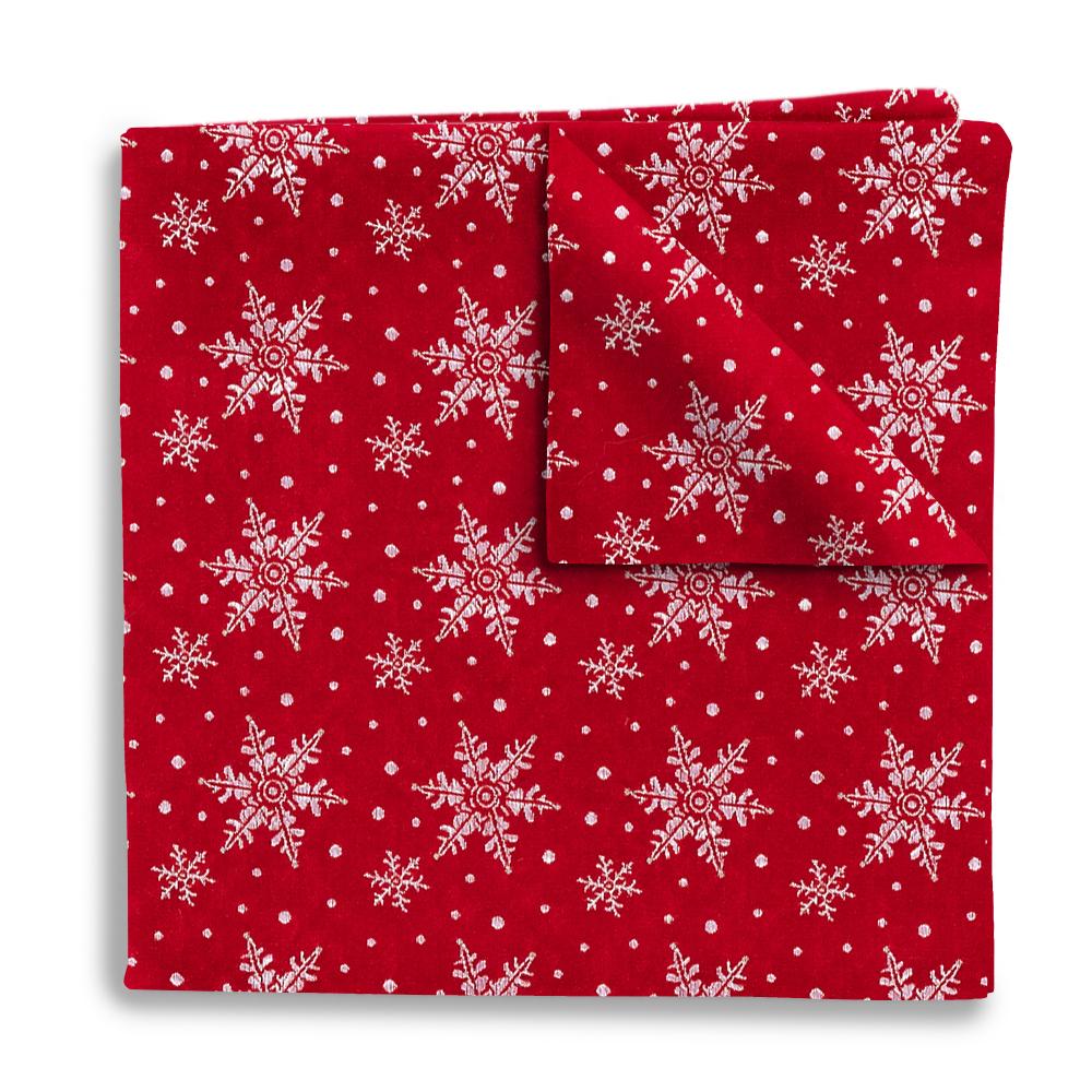 The tips of each large snow crystal, and the centers of the smaller ones, actually sparkle - the result of silver thread woven in the bright red silk. A beautiful choice for holiday wear as well as long into the winter.