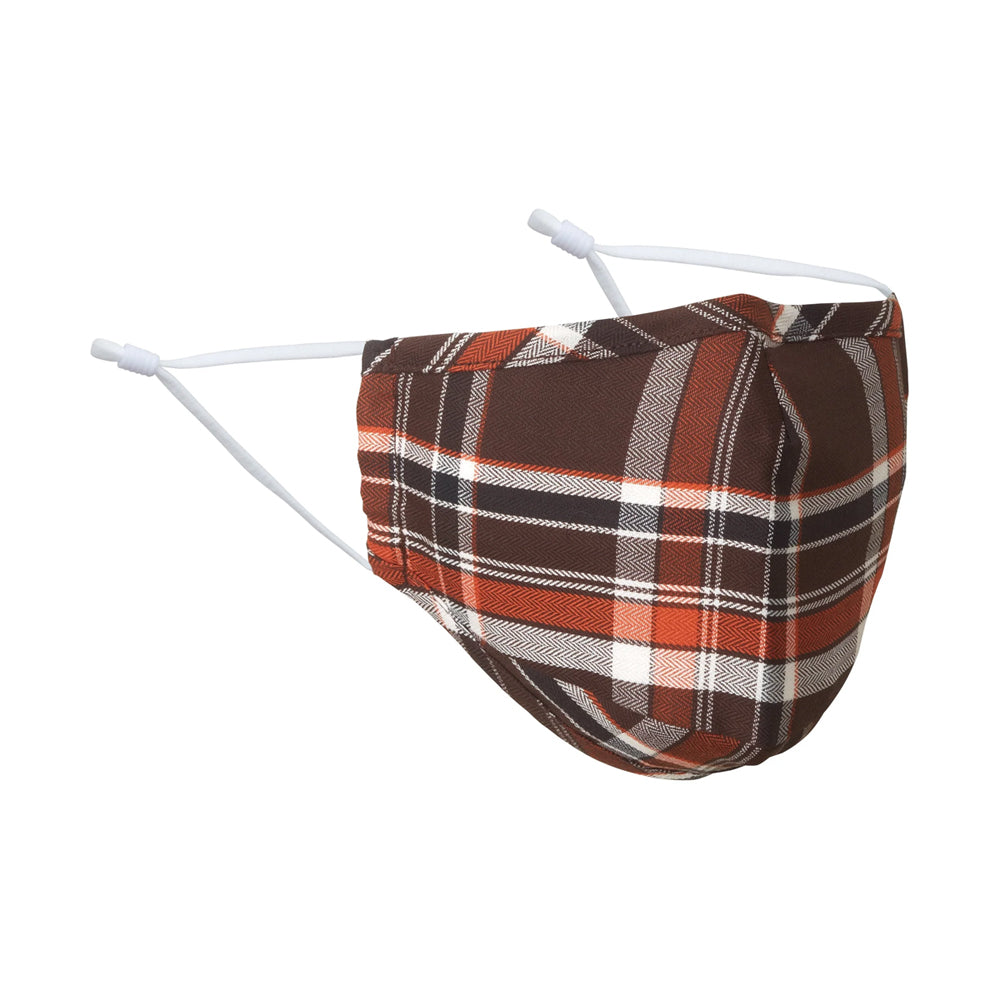 Cover up and look good in this oh-so-comfortable face mask with its warm brown, white and copper plaid pattern.