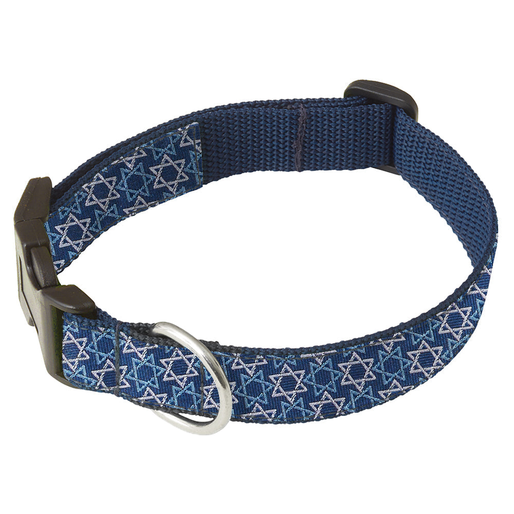 Blue and white stars of David are woven in a dark blue silk in this simply beautiful design - perfect for Hanukkah.