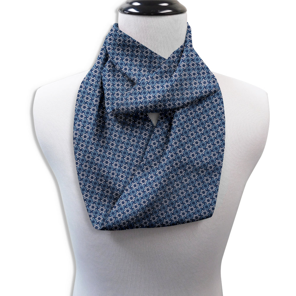 Blue and white stars of David are woven in a dark blue silk in this simply beautiful design - perfect for Hanukkah.
